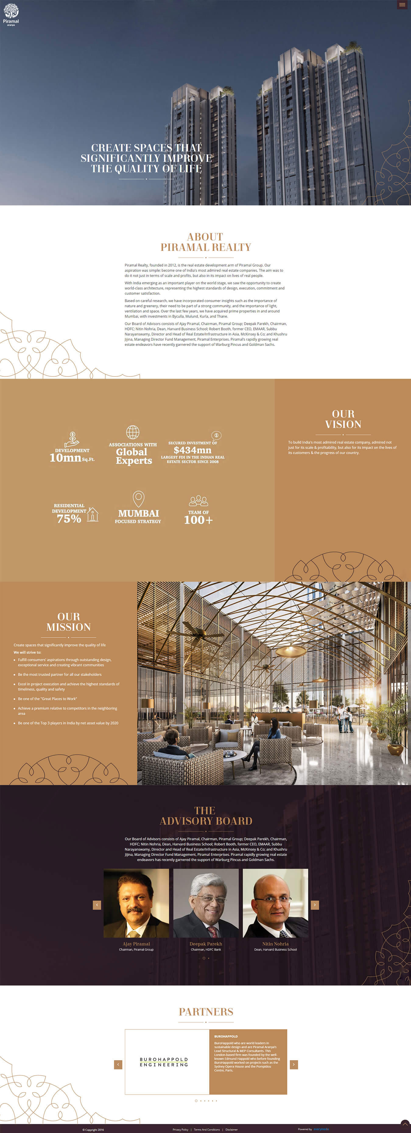 Revel in postcard ready views, with vistas of the largest patch of greenery in the city. Piramal Aranya is the only property in the city that is flanked by the 60-acre Botanical Gardens on one side, and the glittering Mumbai Harbour on the other. And for this picturesque view, they needed to give the audience a view that would attract more leads. We created a website to showcase the property of Piramal Group, and generate enquiry leads.