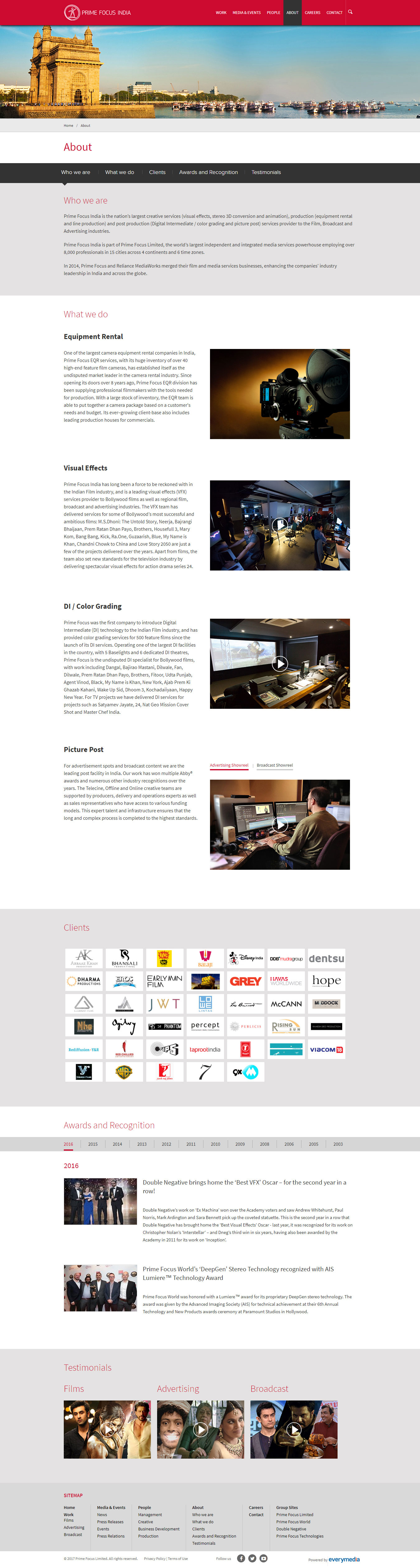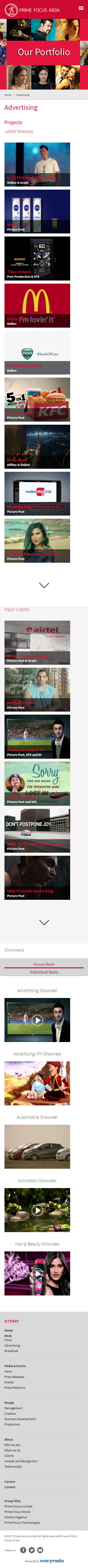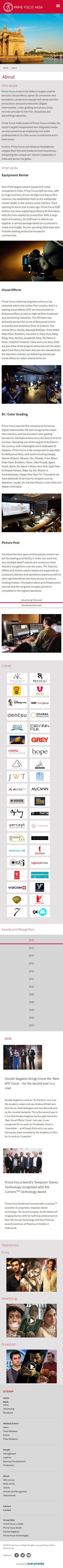 Prime Focus India is one of the largest post-production service providers to the Film, Broadcast and Advertising industries. We created a website to establish the brand Prime Focus India as a thought leader in its sector.